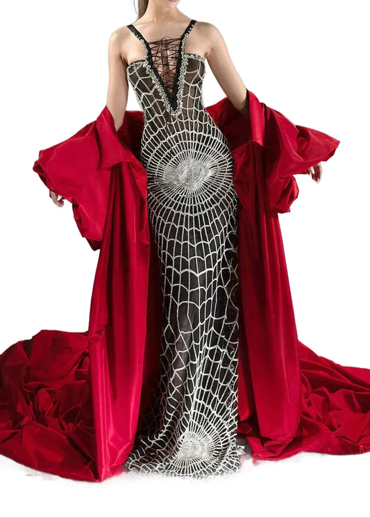 Coralyn Lace Up Sequin Maxi Dress In Black Silver
