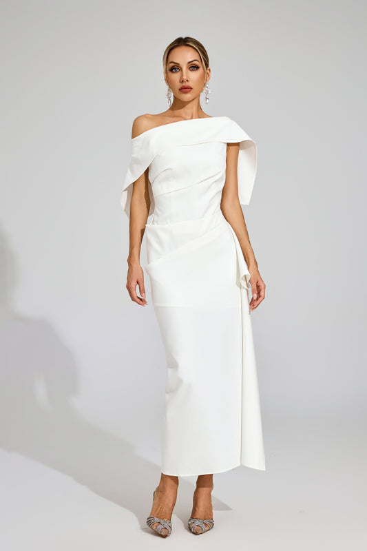 Felara Ruffle Off Shoulder Maxi Dress In White