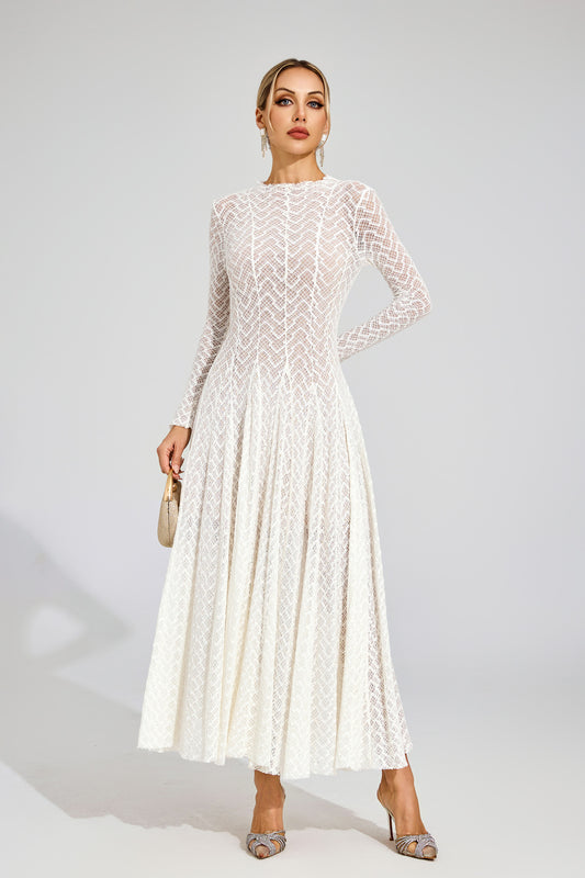 Eryndel Lace Long Sleeve Maxi Dress In White