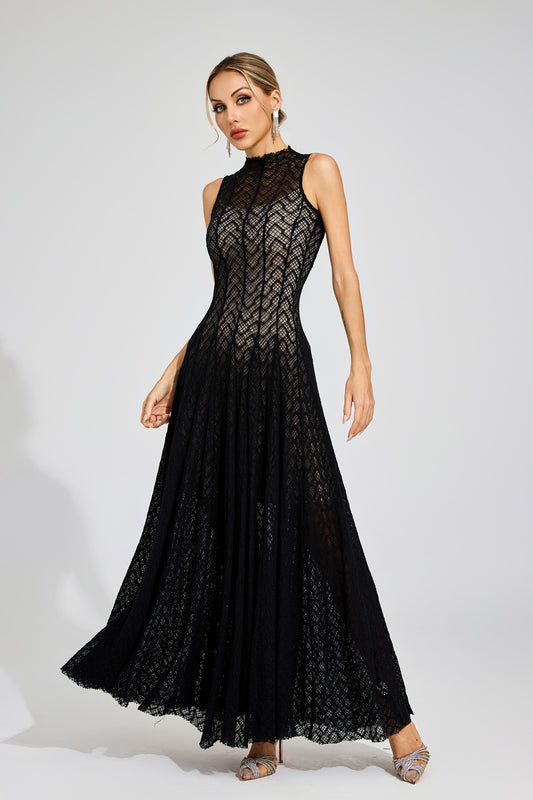 Eryndel Lace Sleeveless Maxi Dress In Black