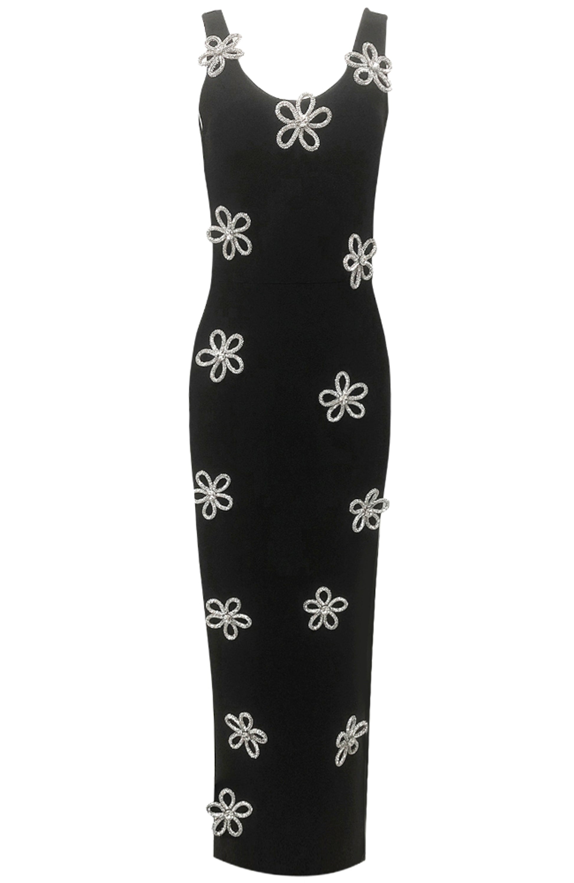 Ainmuire Crystal Floral Detail Maxi Dress In Black