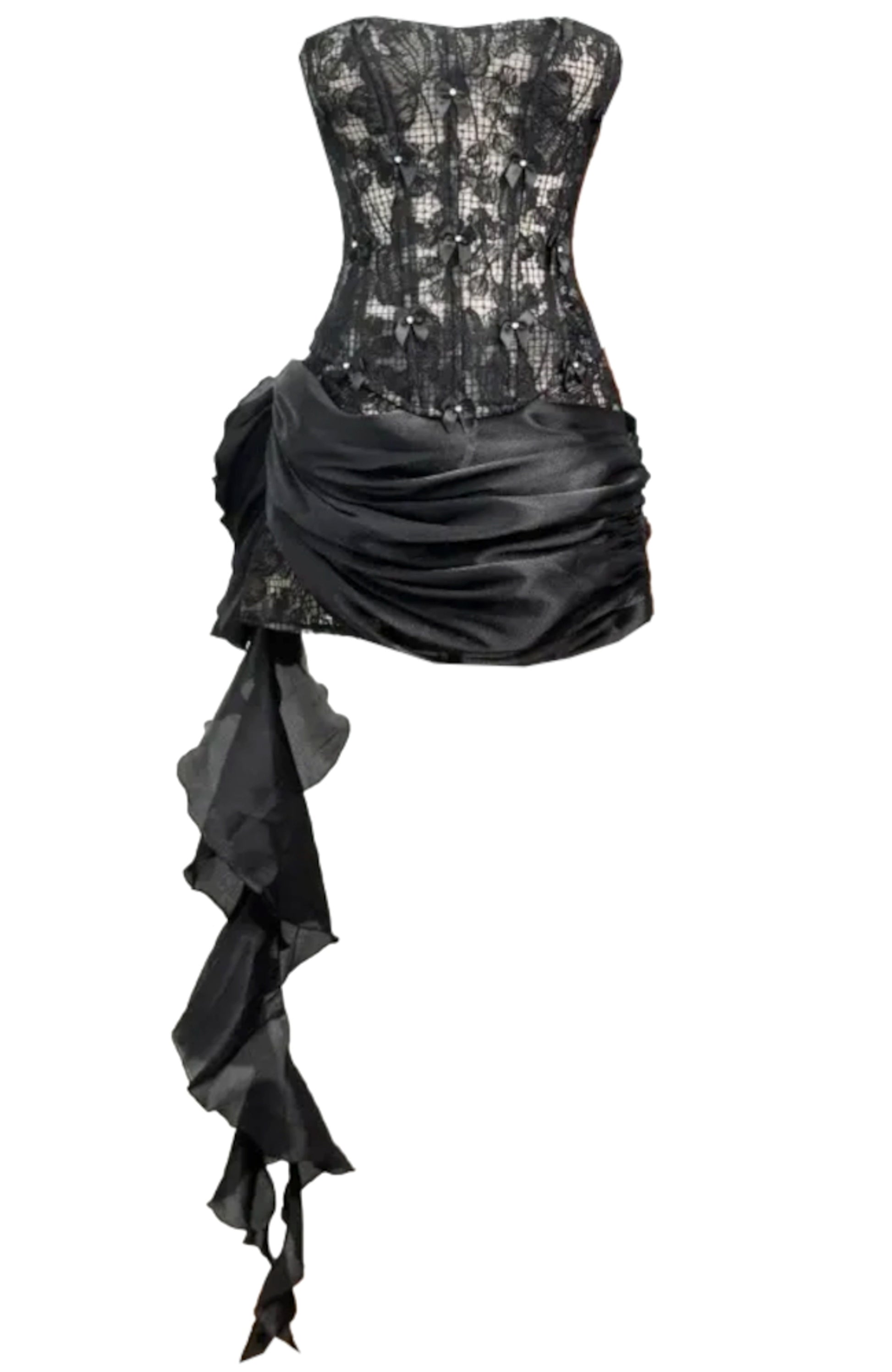 Akeelah Strapless Lace Corset Two Piece Mini Dress In Black