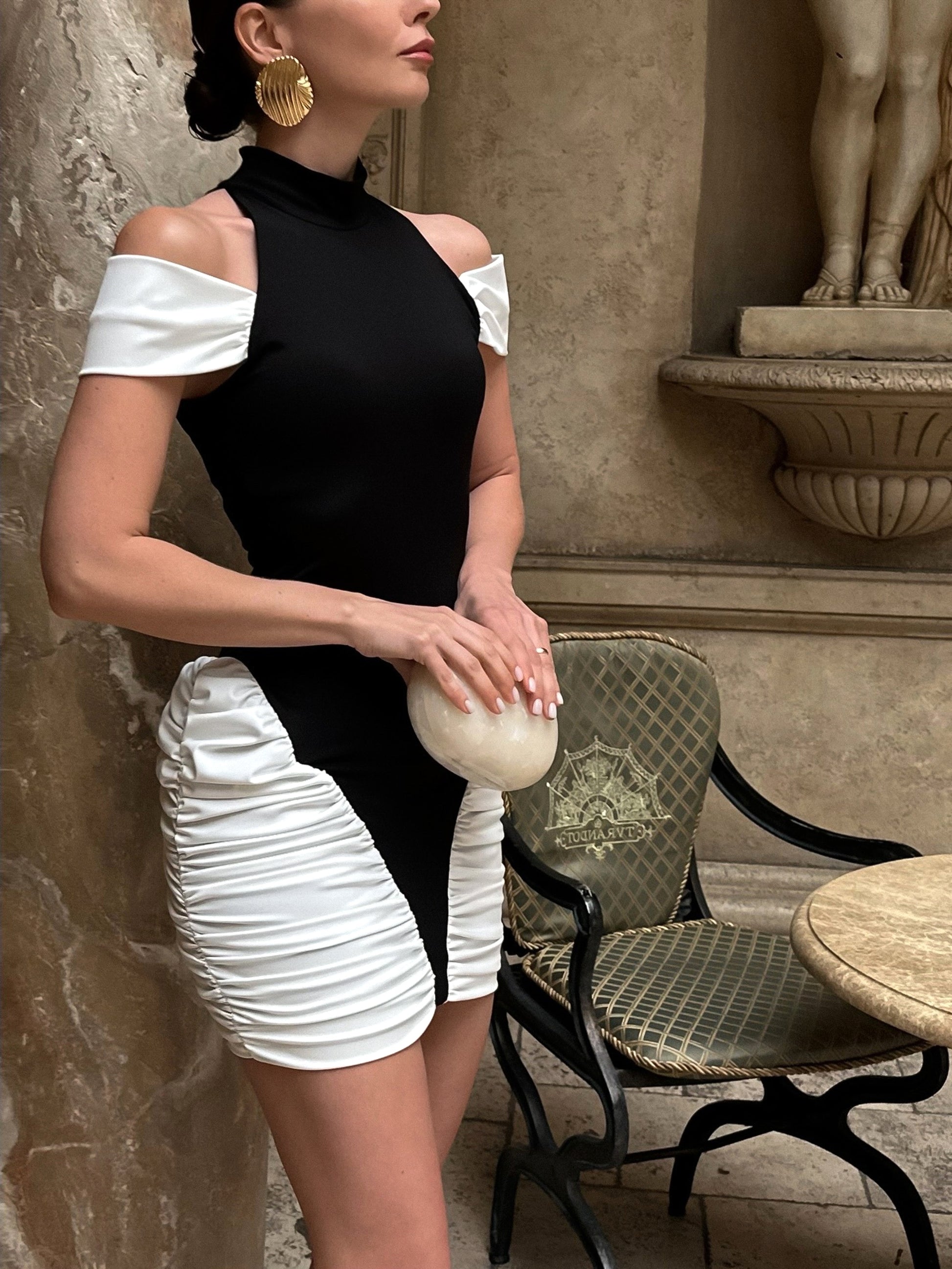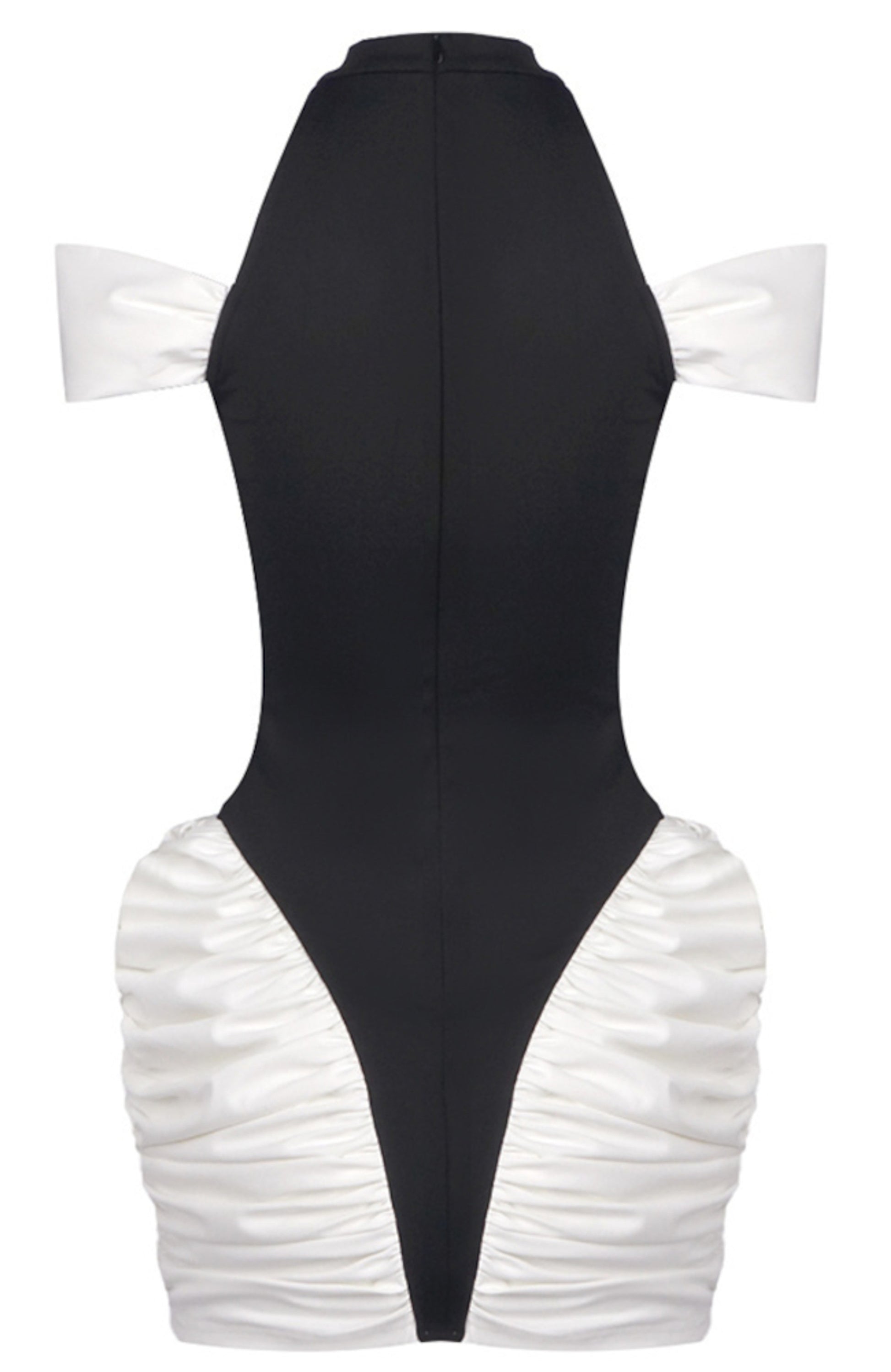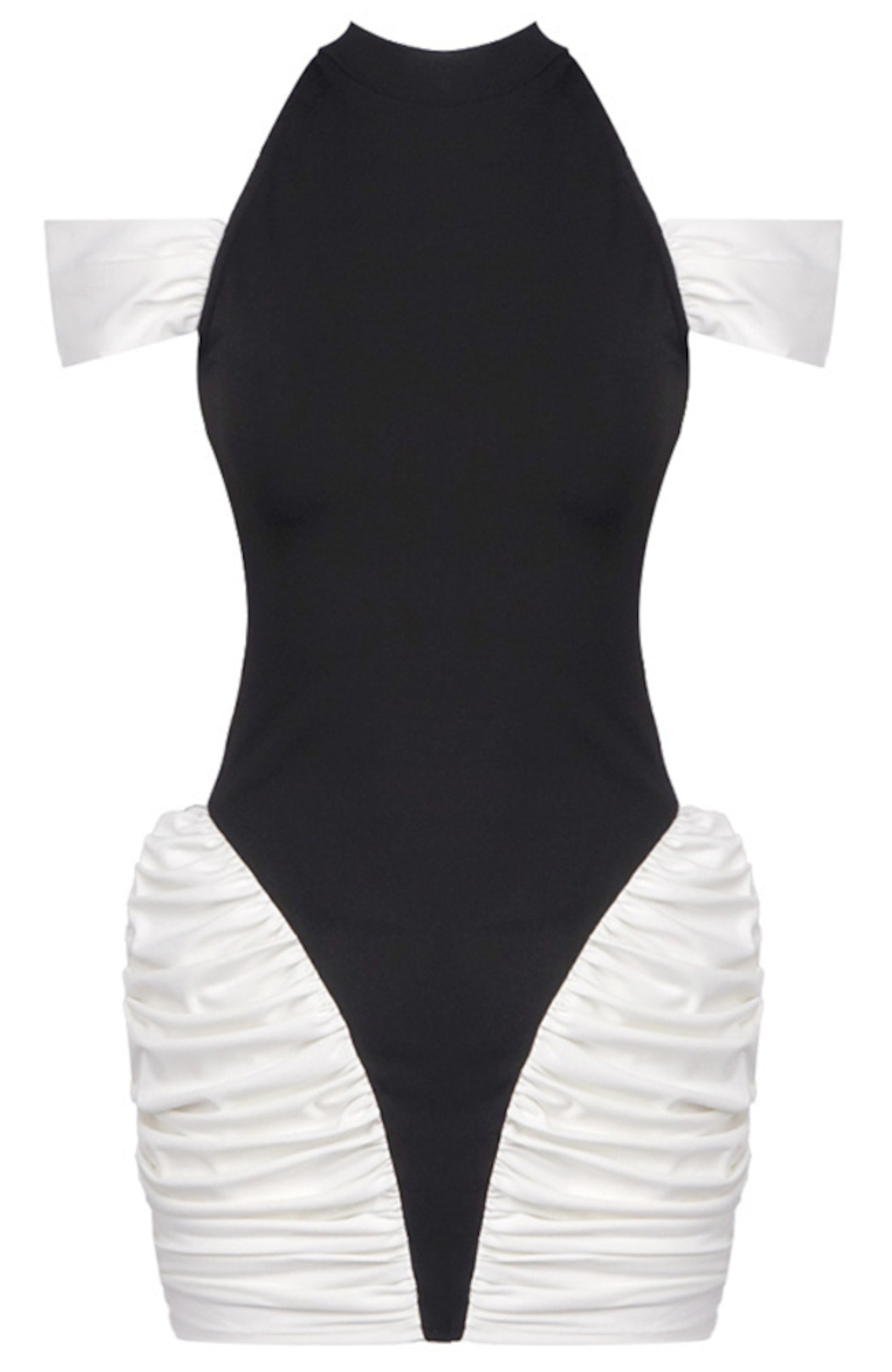Haeris Cold Shoulder Ruched Mini Dress In Black White
