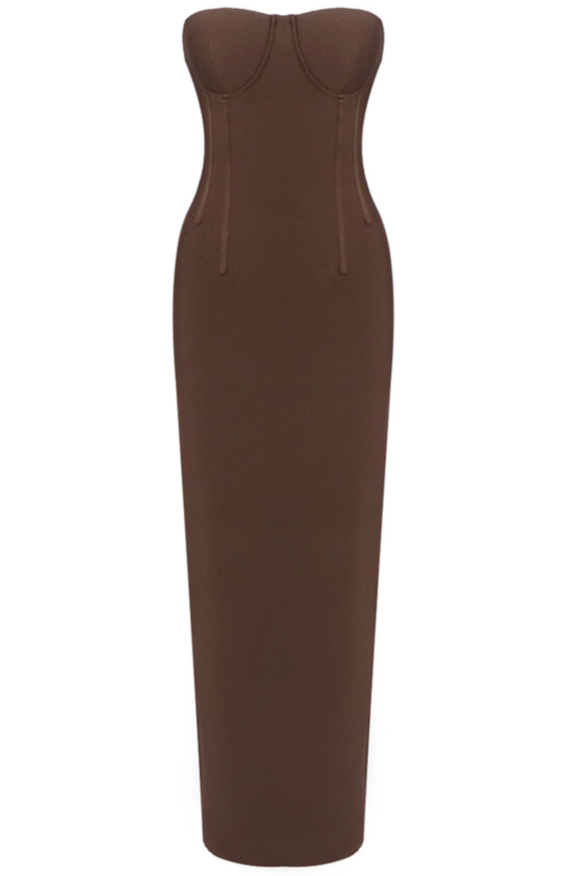 Ottelien Strapless Bustier Maxi Dress In Brown