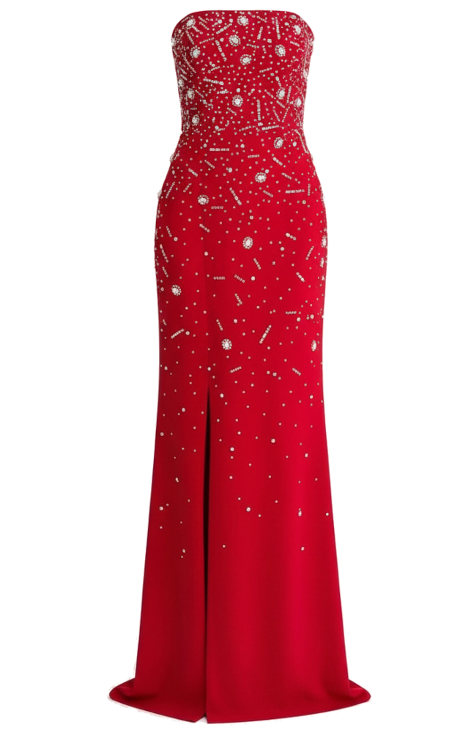 Razrik Strapless Crystal Embellished Maxi Dress In Red