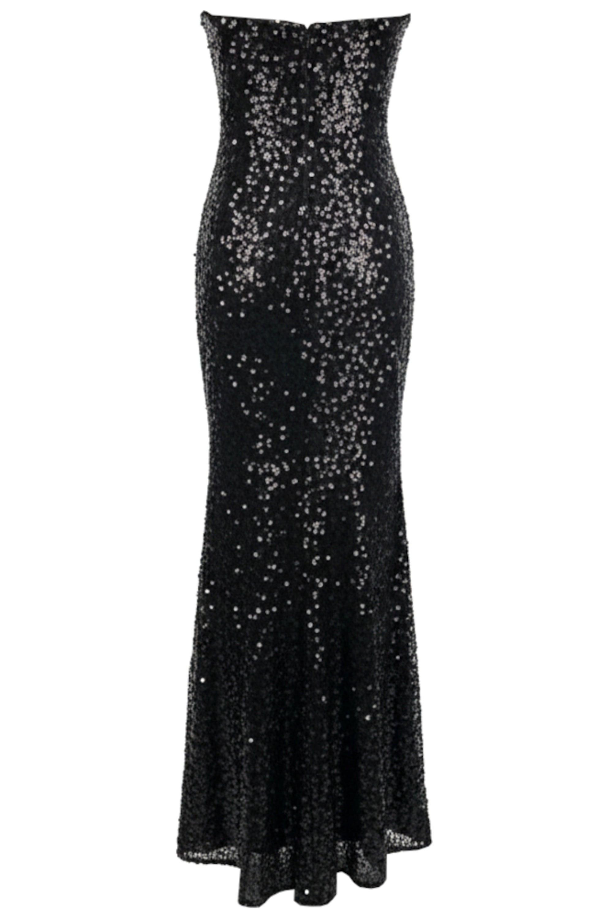 Solum Strapless Embellished Mesh Sequin Maxi Dress In Black