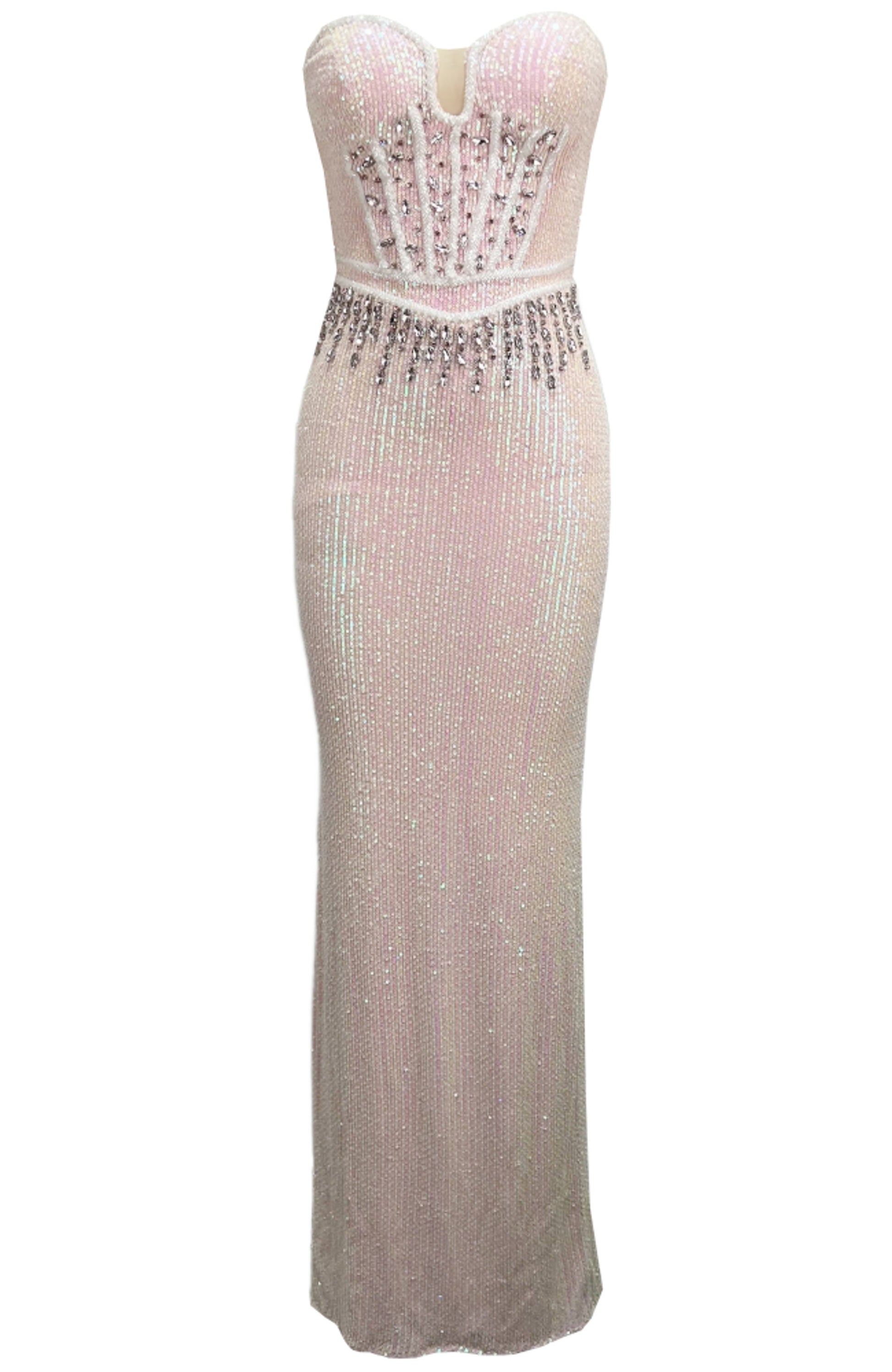 Zexmir Strapless Bustier Crystal Sequin Maxi Dress In Pink